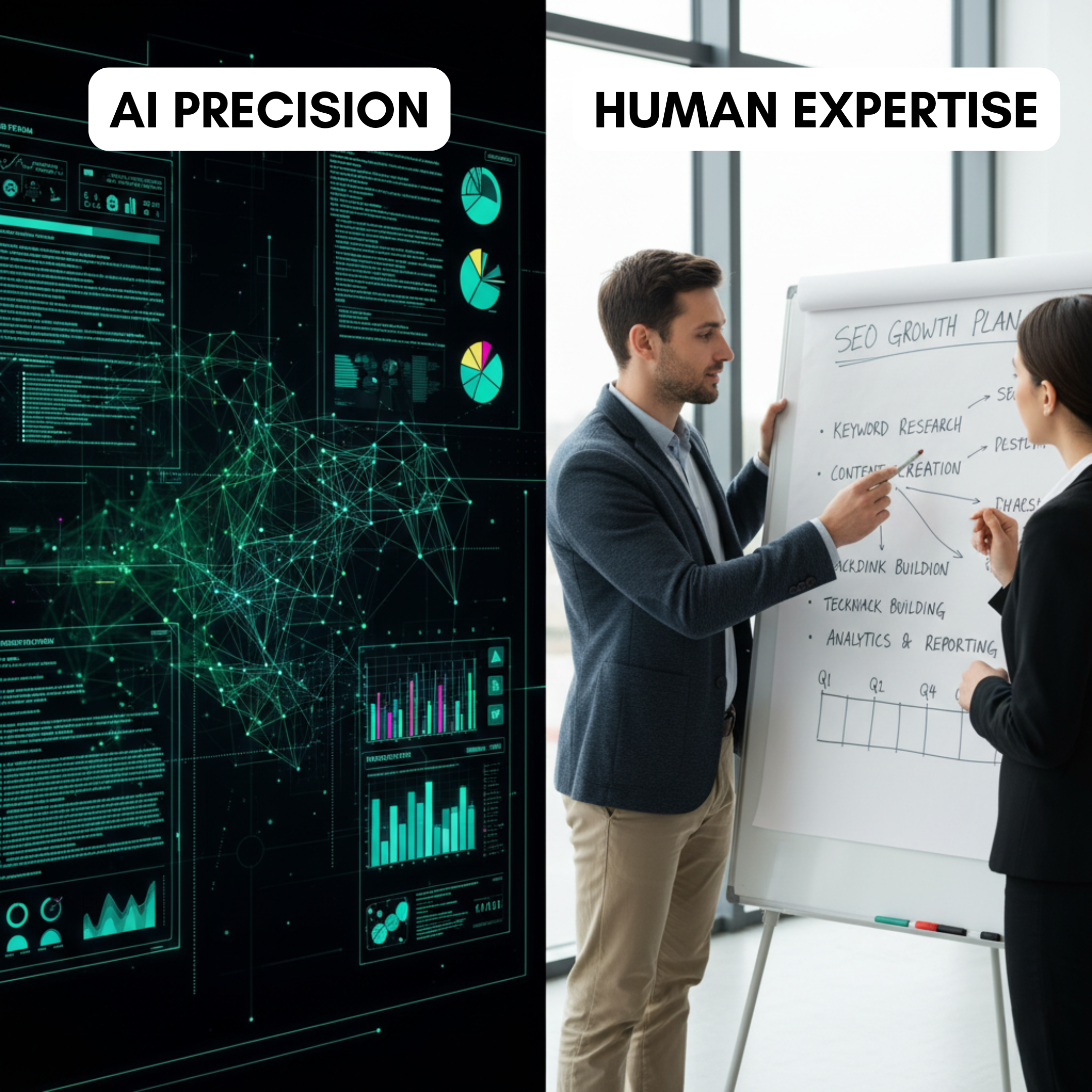 Our AI technology scans over 500 ranking factors in hours, spotting issues that even experienced consultants might miss. But data without interpretation is just noise. That's why our SEO experts then translate this comprehensive data into clear, actionable strategies tailored specifically to your business goals.
